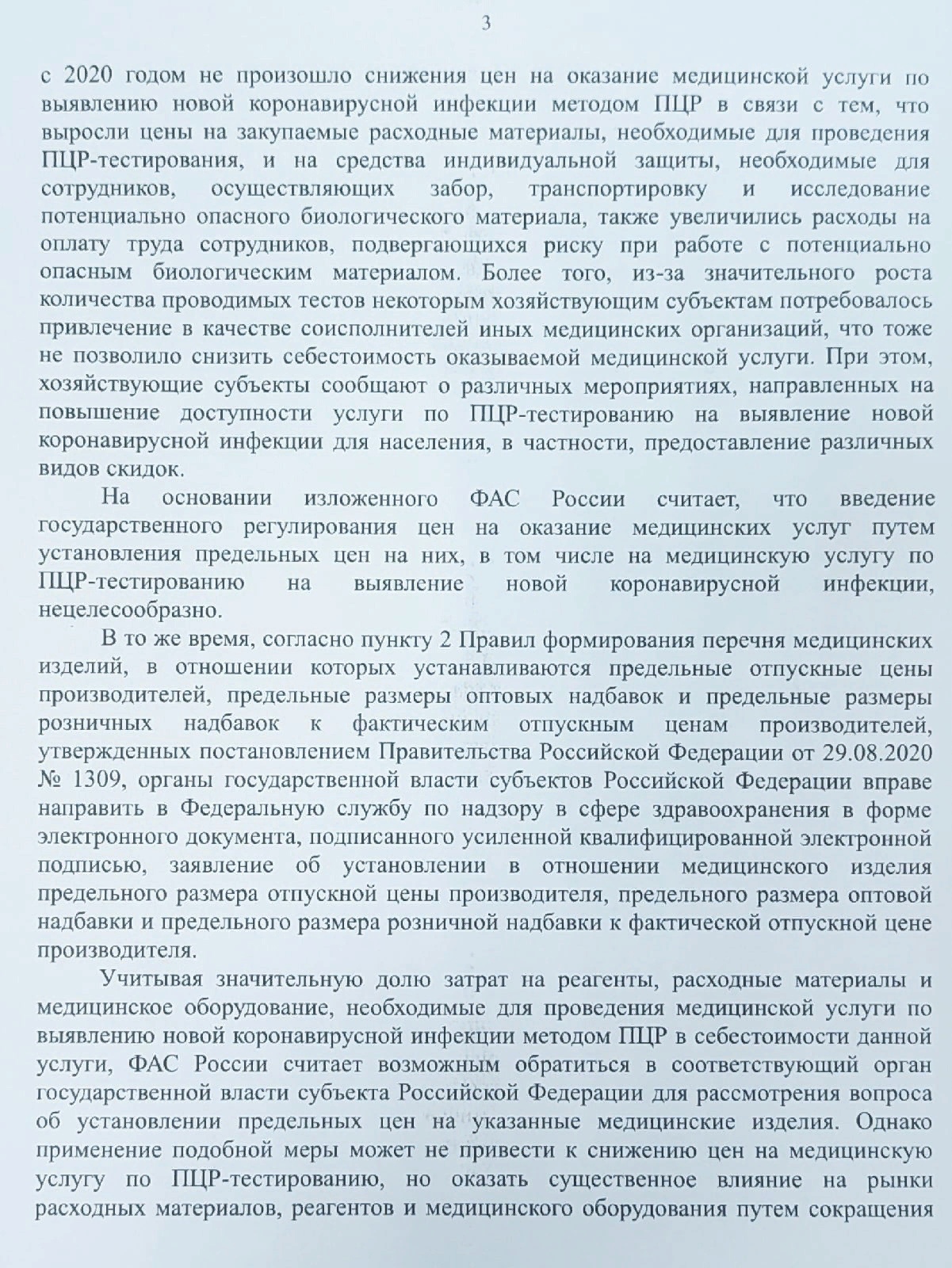 Однако в кабмине ситуацию видят иначе. По мнению чиновников из правительства и ФАС, введение государственного регулирования стоимости ПЦР - тестов на коронавирус нецелесообразно. ФАС свою позицию обосновывает увеличением расходов организаций на подготовку и проведение тестирования.