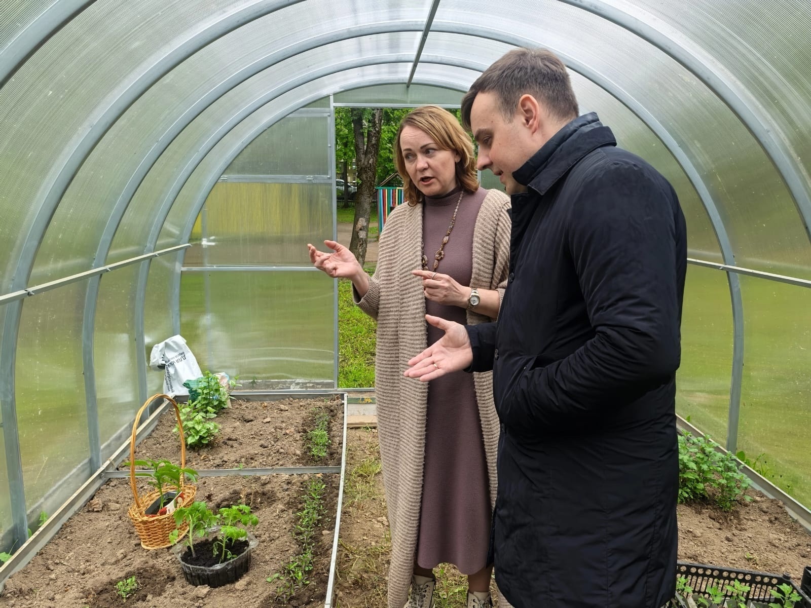 Спустя время при содействии партии парник появился в садике. Михаил Ковалев приехал в учреждение, чтобы оценить новинку, обсудить с заведующей дальнейшие шаги по экопроекту.
