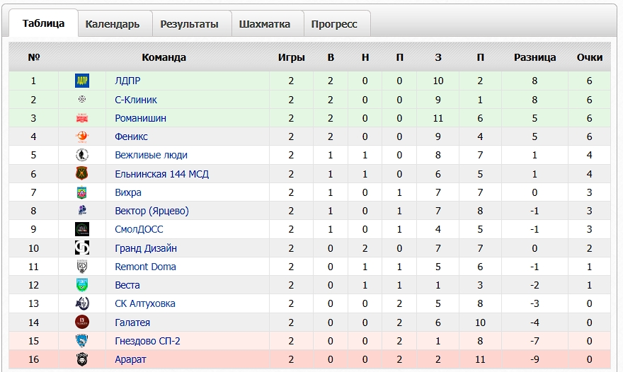 В первом туре в матче с «Галатея» «ЛДПР» одержала победу со счетом 4:2. Во втором туре в состязании с «Гнездово СП-2» команда партии продолжила победную серию, выиграв со счетом 0:6.