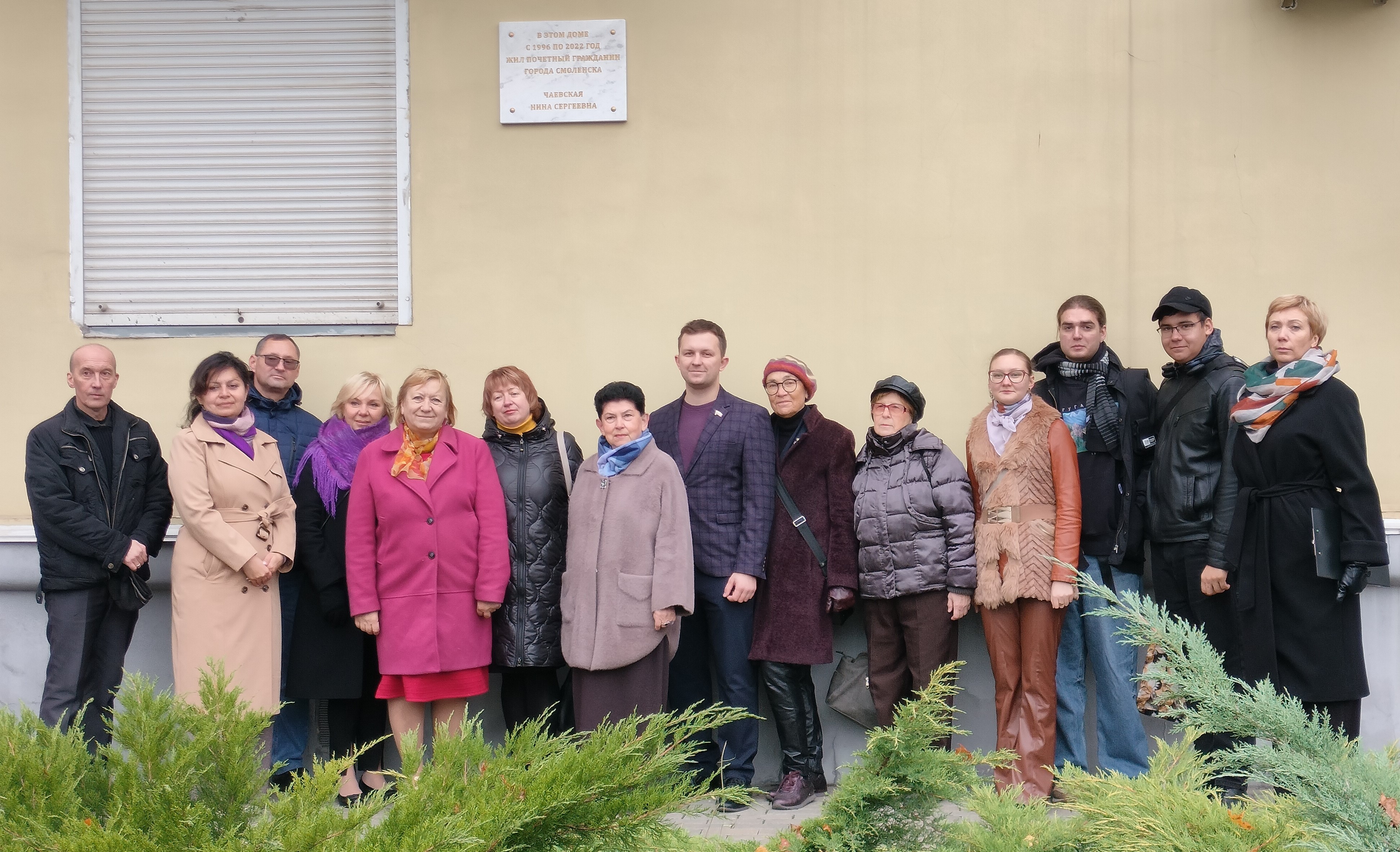 Депутат Смоленского горсовета от ЛДПР Владислав Ульянов принял участие в торжественном открытии мемориальной доски Почетному гражданину Смоленска Нине Чаевской, установленной на доме №3 по проспекту Гагарина.