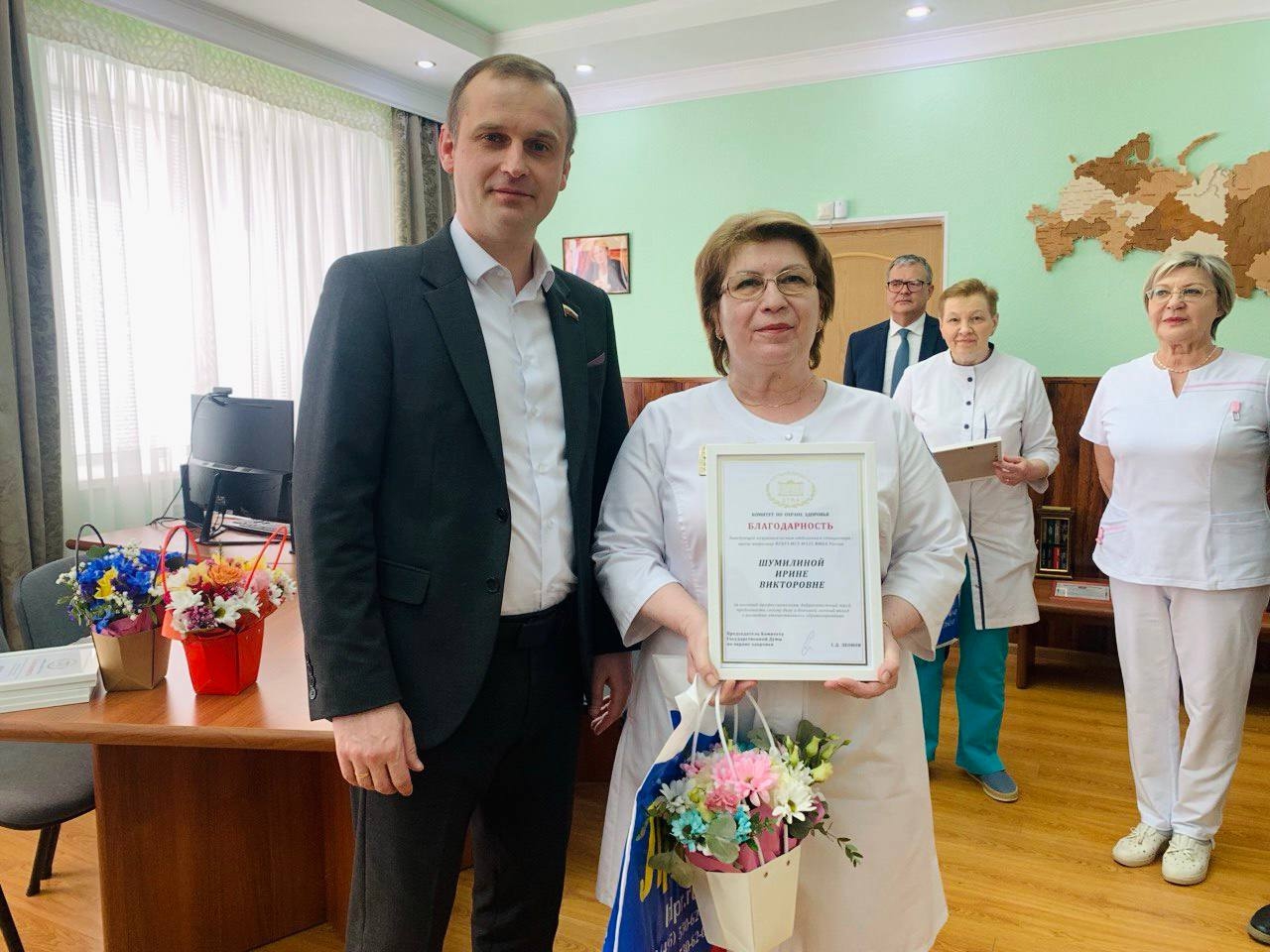 «Пожалуй, самое главное — это то, что сегодня мне удалось лично поблагодарить медицинских работников МСЧ №135 за их добросовестный труд и за внимательное отношение к пациентам. От лица Комитета Госдумы по охране здоровья вручил медикам благодарности за высокий профессионализм и преданность делу», — рассказал парламентарий.